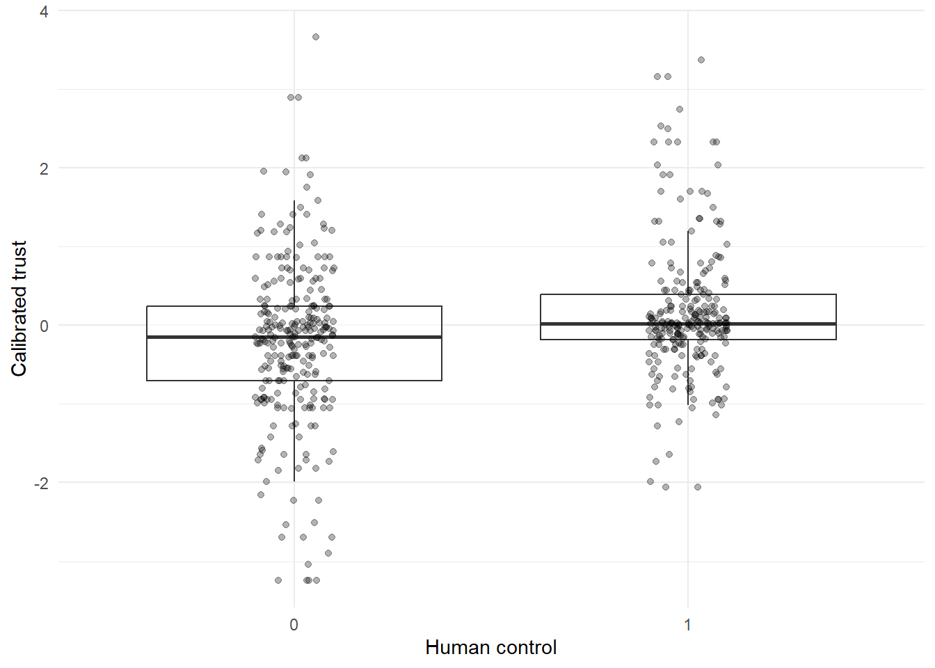 | Calibrated functional McKnight trust (SAE) | Calibrated moral McKnight trust (SAE) | Calibrated functional MDMT trust (SAE) | Calibrated moral MDMT trust (SAE) | |